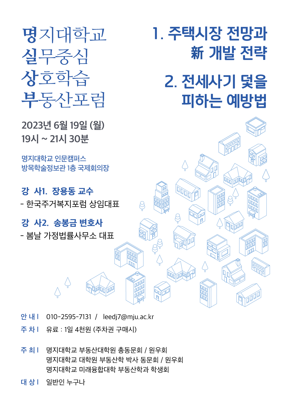 ¿À´Â 6¿ù 19ÀÏ ¿ù¿äÀÏ¿¡ ÀÖÀ» ¸íÁö´ëÇб³ ºÎµ¿»êÇаú Çм®¹Ú ÅëÇÕ ¼¼¹Ì³ª Çà»ç ¾È³»µå¸³´Ï´Ù..1. ÁÖÅýÃÀå Àü¸Á°ú ãæ °³¹ß Àü·«2. Àü¼¼»ç±â µ£À» ÇÇÇÏ´Â ¿¹¹æ¹ý¸¹Àº Âü¿© ºÎʵ右´Ï´Ù.